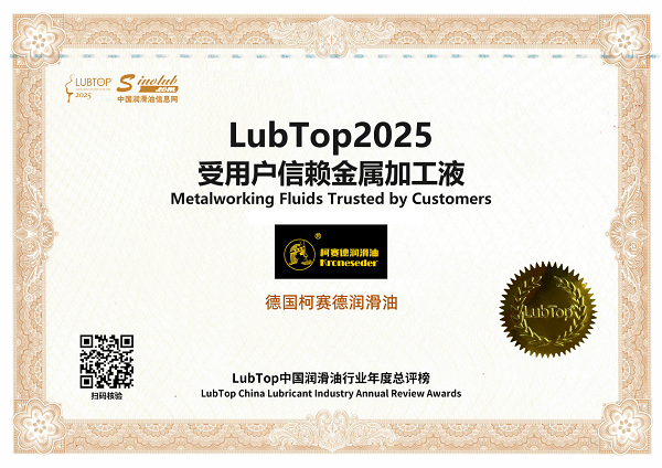LubTop2025“受用户信赖金属加工液”大奖,是对柯赛德Kroneseder过去努力的肯定,更是对其未来发展的期许。
