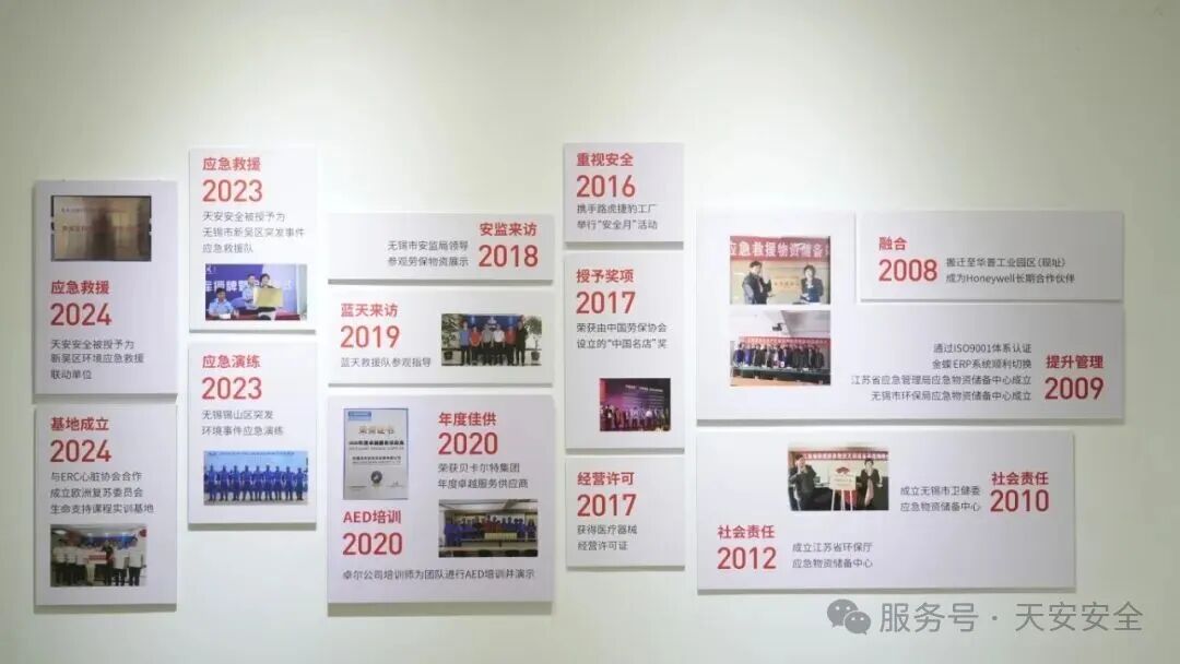 “让天下企业,天天安全”,是天安安全的使命担当。我们不仅是产品的提供者,更是安全服务的践行者。2008年起陆续承担省、市多级应急物资储备基地职责,2023年成为环境事件应急演练应急救援队,2024年成立生命支持课程实训基地,用实际行动践行使命。无论是定期开展的安全培训,还是与蓝天救援队的深度合作,都只为让安全理念深入人心,让应急保障更加有力。